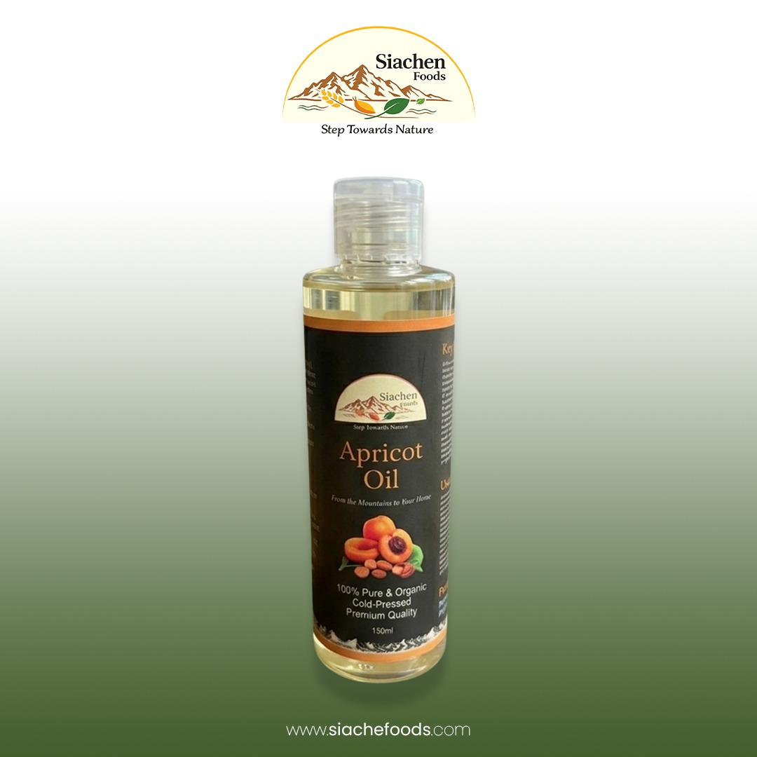 Sourced from the pristine orchards of Hunza Valley, Apricot Kernel Oil is a versatile, lightweight elixir designed to nourish both skin and hair. Cold-pressed from naturally grown, chemical-free apricots, this oil is rich in vitamins A and E, helping to deeply moisturize, enhance natural radiance, and strengthen hair from root to tip. Its gentle composition makes it especially suitable for sensitive skin, delivering hydration without a greasy feel.