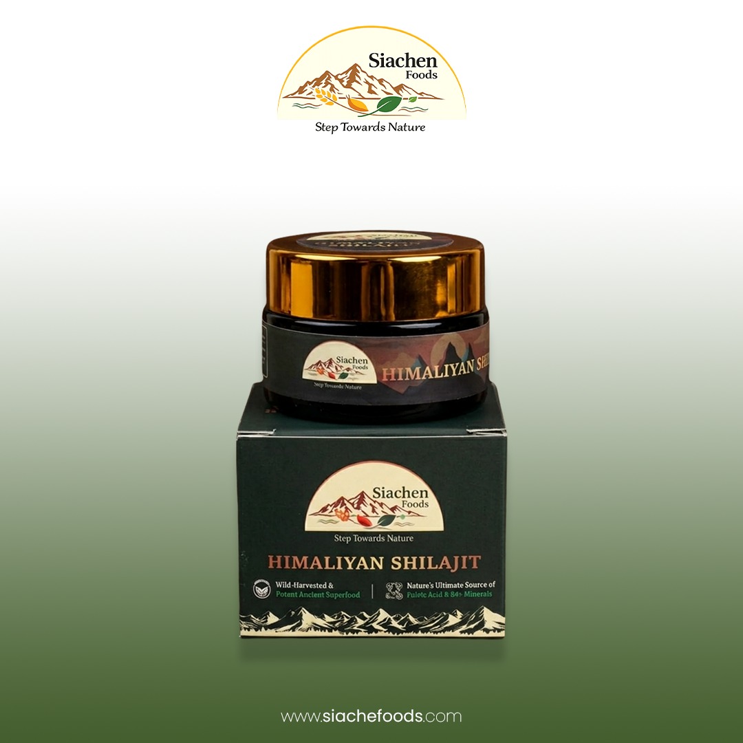 Siache Foods brings you 100% pure Himalayan Shilajit resin, sourced from the high-altitude regions of northern Pakistan. Naturally rich and potent, it is available in 10g, 20g, and 30g sizes. Carefully harvested to preserve its authenticity and quality for your daily wellness.